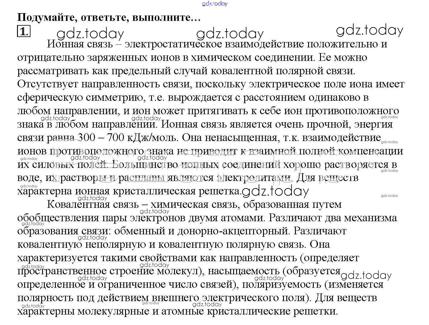 На страницах сайта gdz.today вы найдете учебный и вспомогательный материал, направленный на улучшения знаний школьной программы. ГДЗ - онлайн мир знаний Подумайте, ответьте, выполните Решение к § 7. Основные виды химической связи. Ионная и ковалентная связь 1 Учебнику по Химии для 11 класса Рудзитис, Фельдман Базовый уровень Просвещение 2017