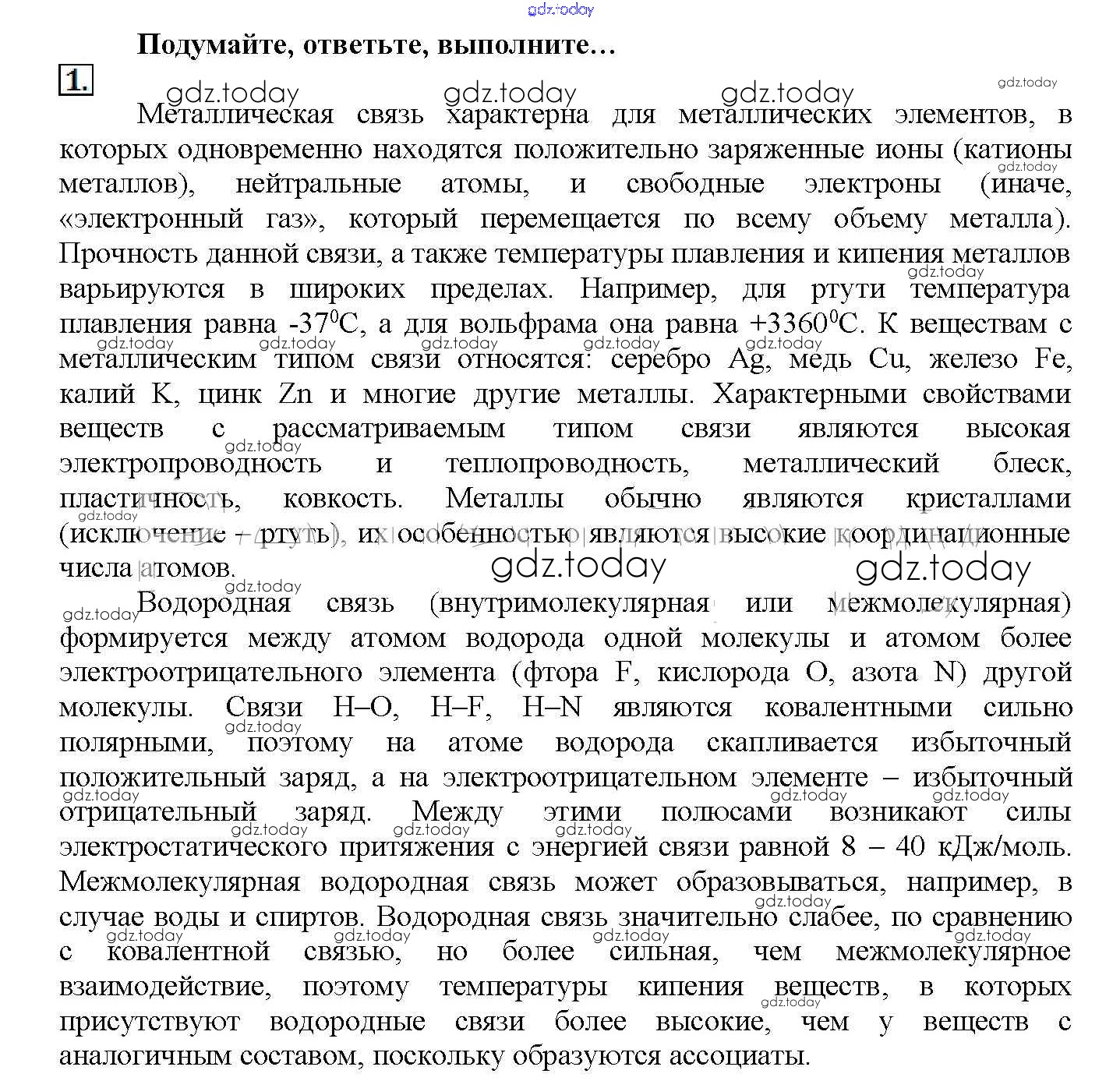 На страницах сайта gdz.today вы найдете учебный и вспомогательный материал, направленный на улучшения знаний школьной программы. ГДЗ - онлайн мир знаний Подумайте, ответьте, выполните Решение к § 8. Металлическая связь. Водородная связь 1 Учебнику по Химии для 11 класса Рудзитис, Фельдман Базовый уровень Просвещение 2017
