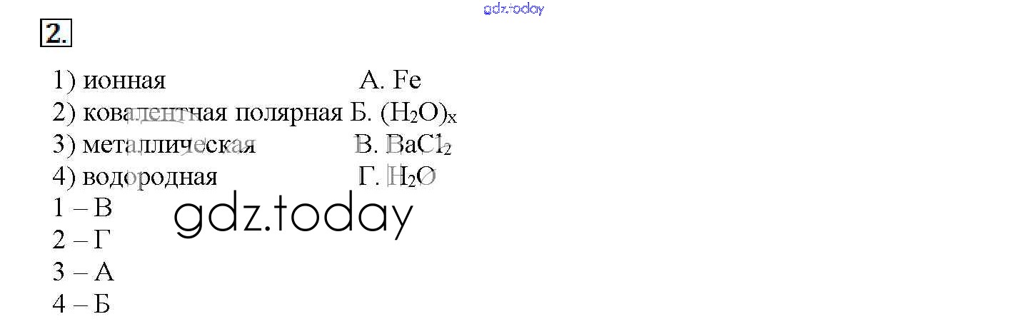 На страницах сайта gdz.today вы найдете учебный и вспомогательный материал, направленный на улучшения знаний школьной программы. ГДЗ - онлайн мир знаний Тестовые задания Решение к § 8. Металлическая связь. Водородная связь 2 Учебнику по Химии для 11 класса Рудзитис, Фельдман Базовый уровень Просвещение 2017