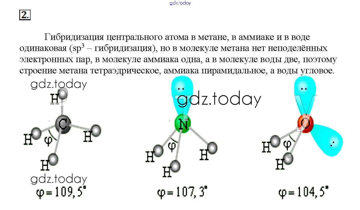 На страницах сайта gdz.today вы найдете учебный и вспомогательный материал, направленный на улучшения знаний школьной программы. ГДЗ - онлайн мир знаний Подумайте, ответьте, выполните Решение к § 9. Пространственное строение молекул 2 Учебнику по Химии для 11 класса Рудзитис, Фельдман Базовый уровень Просвещение 2017