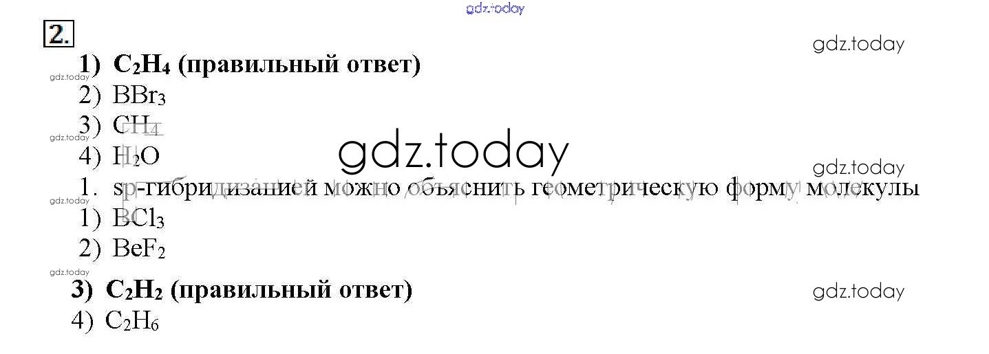 Ответы к Тестовые задания Решение к § 9. Пространственное строение молекул 2 Учебнику по Химии для 11 класса Рудзитис, Фельдман Базовый уровень Просвещение 2017