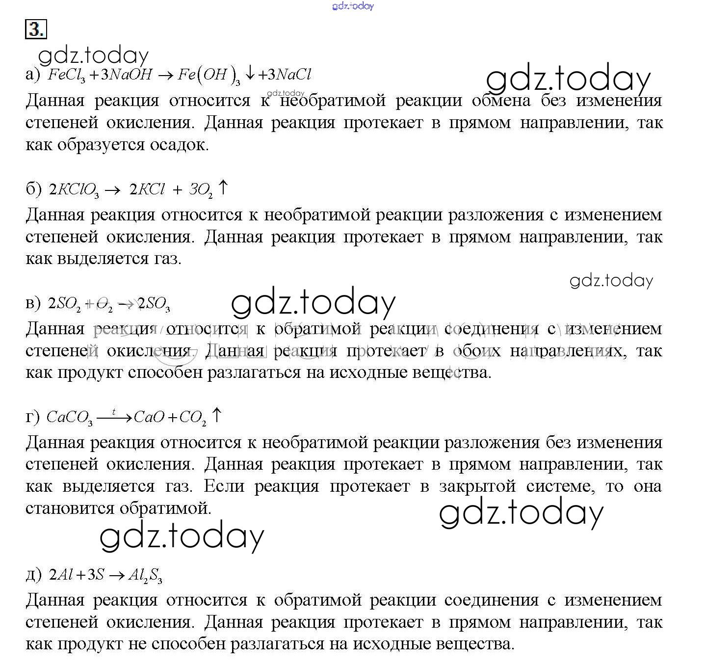 На страницах сайта gdz.today вы найдете учебный и вспомогательный материал, направленный на улучшения знаний школьной программы. ГДЗ - онлайн мир знаний Подумайте, ответьте, выполните Решение к § 12. Классификация химических реакций 3 Учебнику по Химии для 11 класса Рудзитис, Фельдман Базовый уровень Просвещение 2017