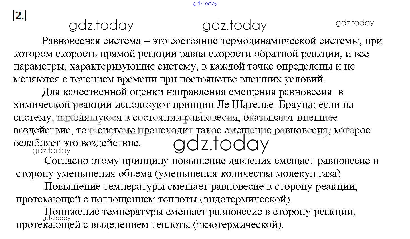 На страницах сайта gdz.today вы найдете учебный и вспомогательный материал, направленный на улучшения знаний школьной программы. ГДЗ - онлайн мир знаний Подумайте, ответьте, выполните Решение к § 15. Химическое равновесие и условия его смешения 2 Учебнику по Химии для 11 класса Рудзитис, Фельдман Базовый уровень Просвещение 2017