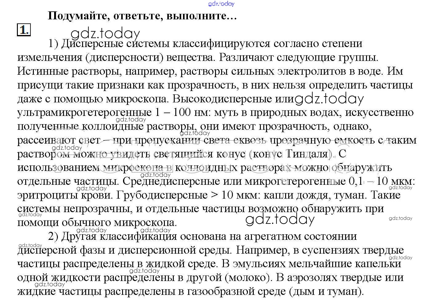 На страницах сайта gdz.today вы найдете учебный и вспомогательный материал, направленный на улучшения знаний школьной программы. ГДЗ - онлайн мир знаний Подумайте, ответьте, выполните Решение к § 16. Дисперсные системы 1 Учебнику по Химии для 11 класса Рудзитис, Фельдман Базовый уровень Просвещение 2017