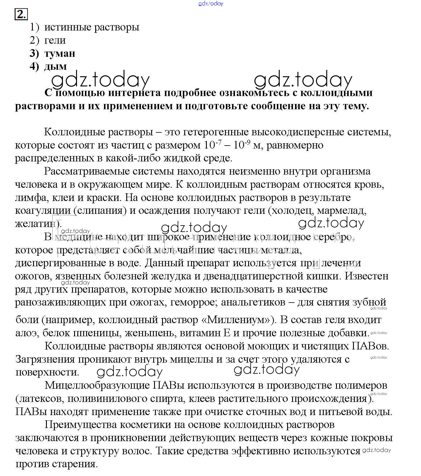 На страницах сайта gdz.today вы найдете учебный и вспомогательный материал, направленный на улучшения знаний школьной программы. ГДЗ - онлайн мир знаний Тестовые задания Решение к § 16. Дисперсные системы 2 Учебнику по Химии для 11 класса Рудзитис, Фельдман Базовый уровень Просвещение 2017