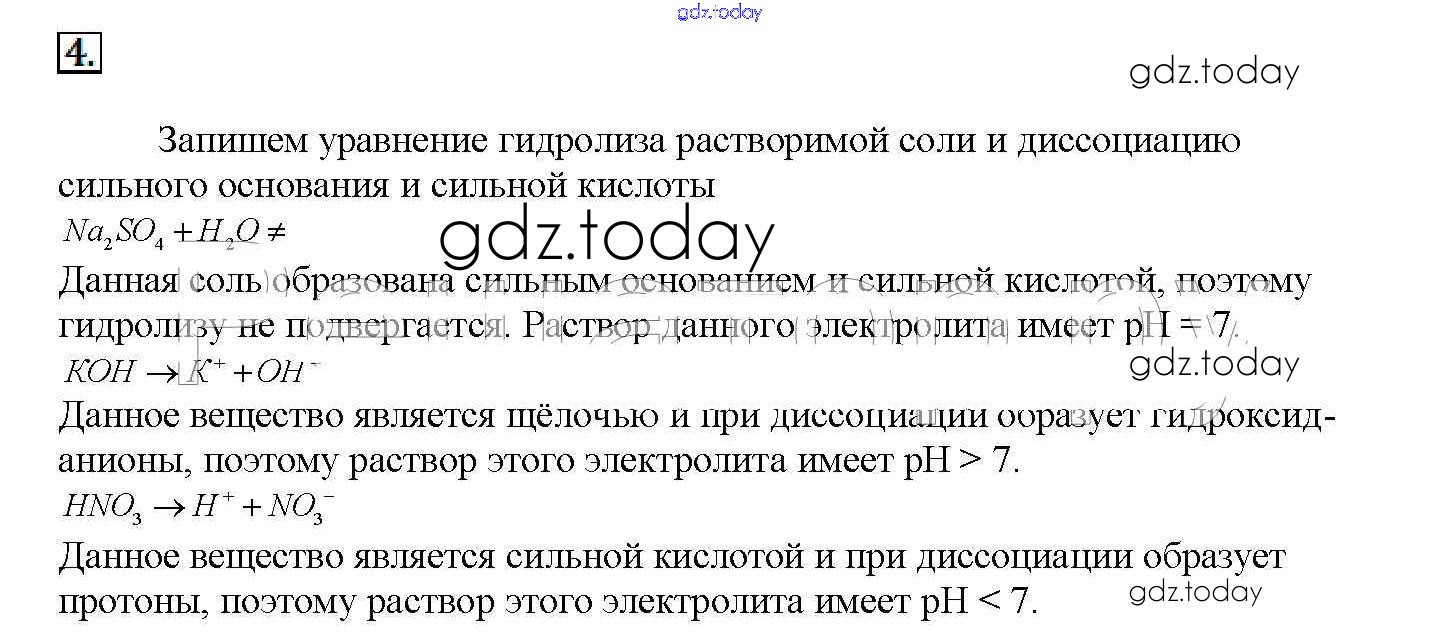 Ответы к Подумайте, ответьте, выполните Решение к § 19. Электролитическая диссоциация. Водородный показатель 4 Учебнику по Химии для 11 класса Рудзитис, Фельдман Базовый уровень Просвещение 2017