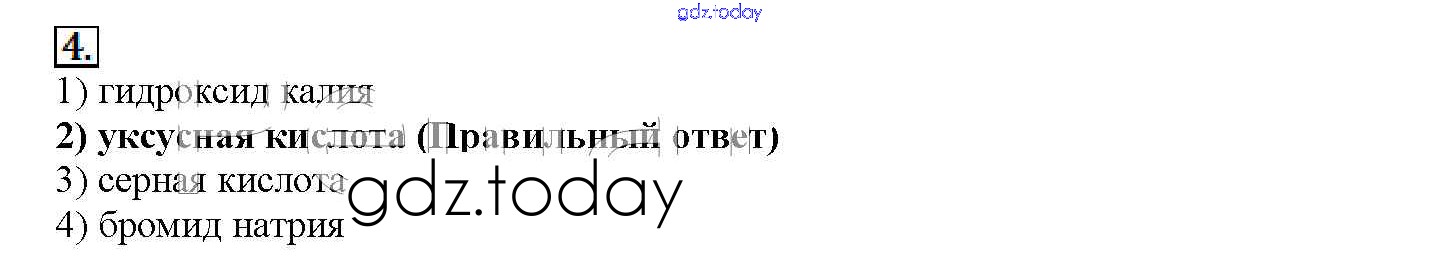 Ответы к Тестовые задания Решение к § 19. Электролитическая диссоциация. Водородный показатель 4 Учебнику по Химии для 11 класса Рудзитис, Фельдман Базовый уровень Просвещение 2017