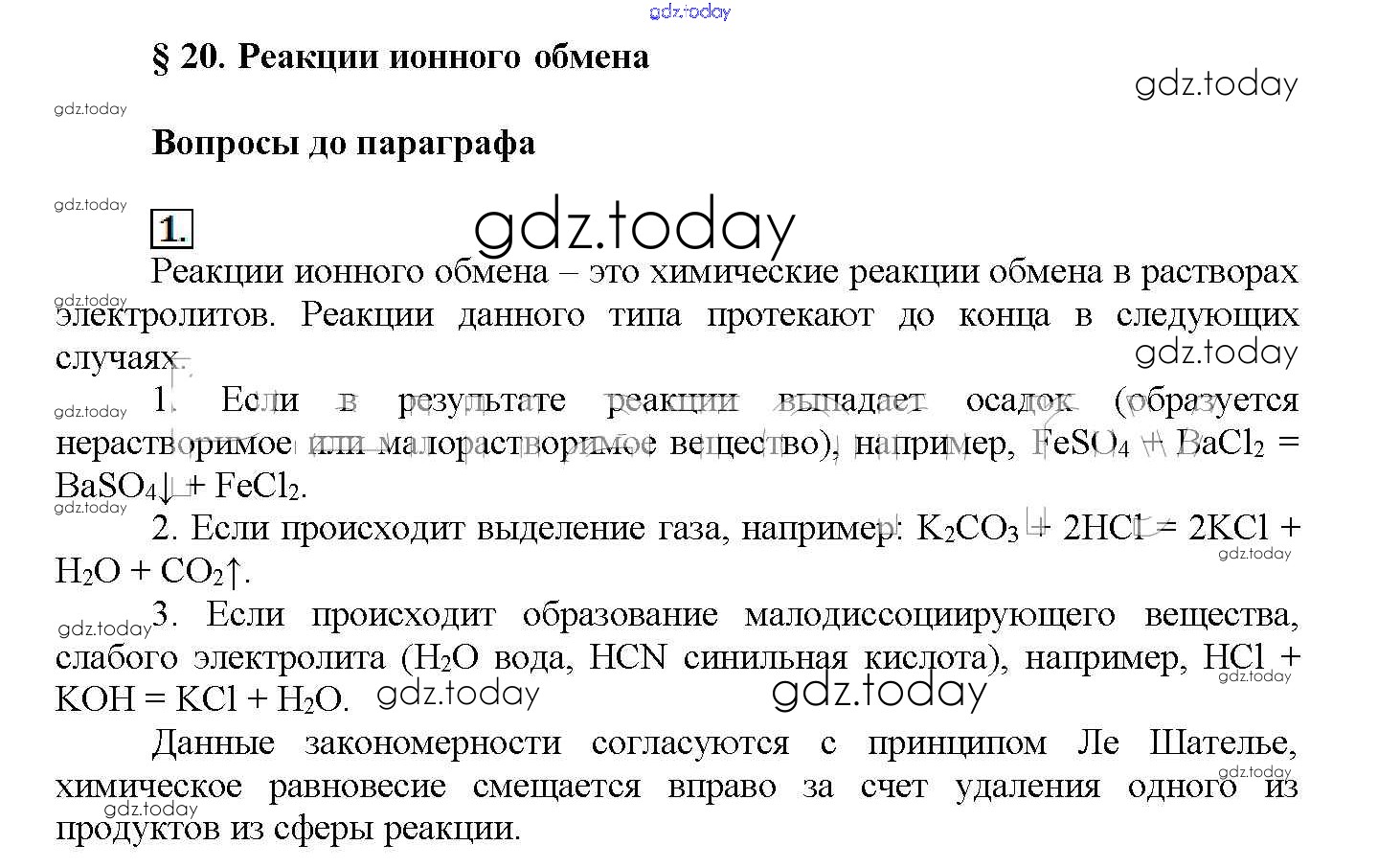 На страницах сайта gdz.today вы найдете учебный и вспомогательный материал, направленный на улучшения знаний школьной программы. ГДЗ - онлайн мир знаний Вопросы до параграфа Решение к § 20. Реакции ионного обмена 1 Учебнику по Химии для 11 класса Рудзитис, Фельдман Базовый уровень Просвещение 2017