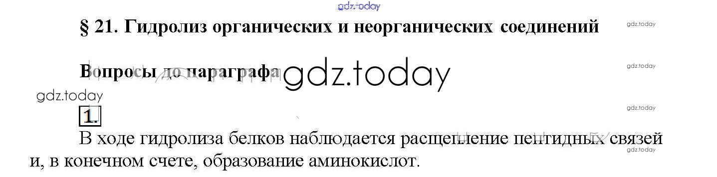 На страницах сайта gdz.today вы найдете учебный и вспомогательный материал, направленный на улучшения знаний школьной программы. ГДЗ - онлайн мир знаний Вопросы до параграфа Решение к § 21. Гидролиз органических и неорганических соединений 1 Учебнику по Химии для 11 класса Рудзитис, Фельдман Базовый уровень Просвещение 2017
