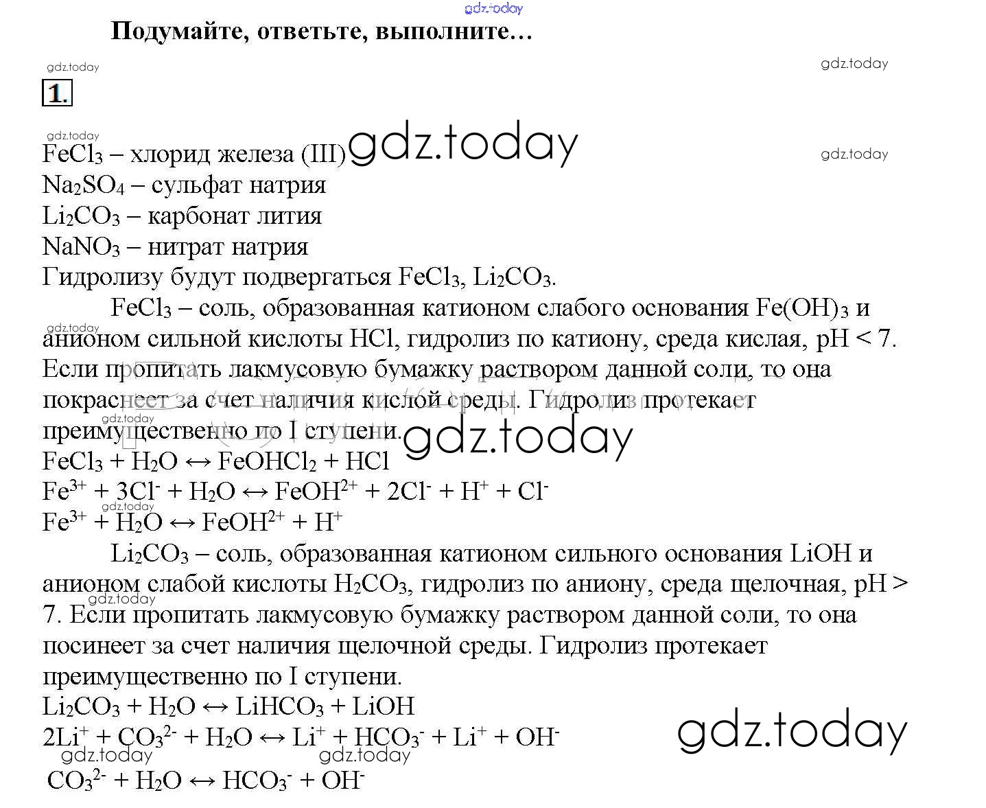 На страницах сайта gdz.today вы найдете учебный и вспомогательный материал, направленный на улучшения знаний школьной программы. ГДЗ - онлайн мир знаний Подумайте, ответьте, выполните Решение к § 21. Гидролиз органических и неорганических соединений 1 Учебнику по Химии для 11 класса Рудзитис, Фельдман Базовый уровень Просвещение 2017