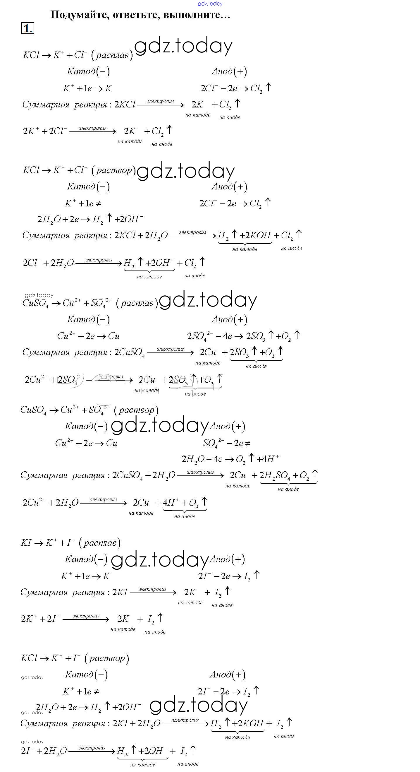 На страницах сайта gdz.today вы найдете учебный и вспомогательный материал, направленный на улучшения знаний школьной программы. ГДЗ - онлайн мир знаний Подумайте, ответьте, выполните Решение к § 25. Электролиз 1 Учебнику по Химии для 11 класса Рудзитис, Фельдман Базовый уровень Просвещение 2017