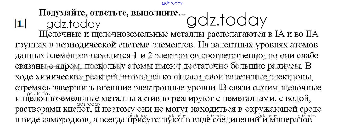На страницах сайта gdz.today вы найдете учебный и вспомогательный материал, направленный на улучшения знаний школьной программы. ГДЗ - онлайн мир знаний Подумайте, ответьте, выполните Решение к § 27. Обзор металлических элементов а-групп 1 Учебнику по Химии для 11 класса Рудзитис, Фельдман Базовый уровень Просвещение 2017