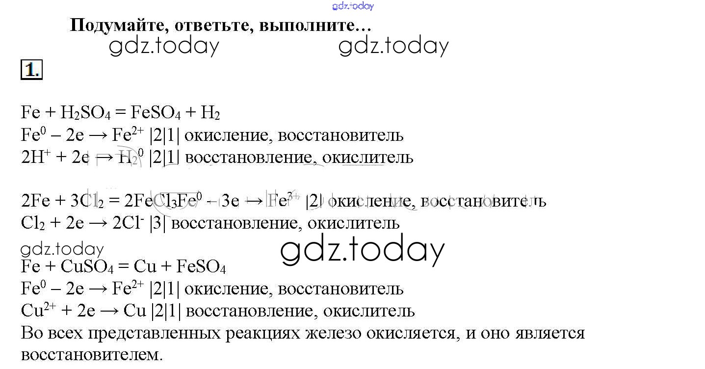 На страницах сайта gdz.today вы найдете учебный и вспомогательный материал, направленный на улучшения знаний школьной программы. ГДЗ - онлайн мир знаний Подумайте, ответьте, выполните Решение к § 32. Железо, никель, платина 1 Учебнику по Химии для 11 класса Рудзитис, Фельдман Базовый уровень Просвещение 2017