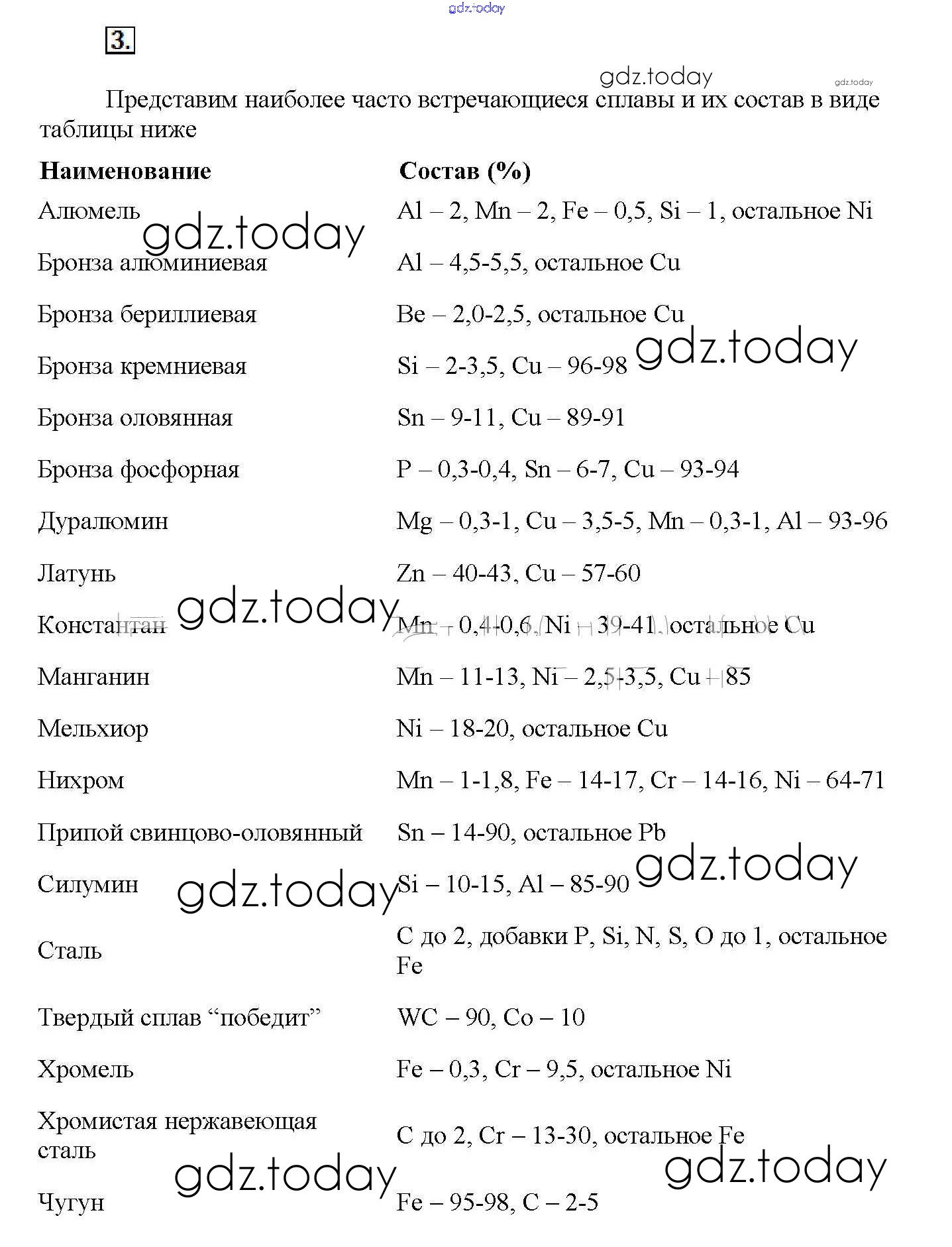 На страницах сайта gdz.today вы найдете учебный и вспомогательный материал, направленный на улучшения знаний школьной программы. ГДЗ - онлайн мир знаний Вопросы до параграфа Решение к § 33. Сплавы металлов 3 Учебнику по Химии для 11 класса Рудзитис, Фельдман Базовый уровень Просвещение 2017