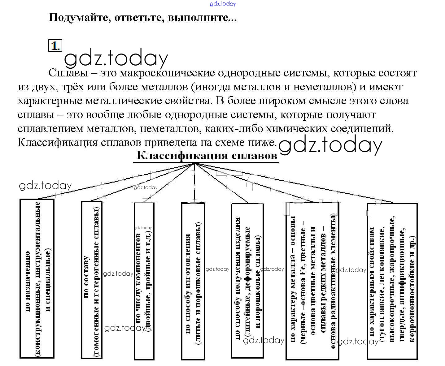 На страницах сайта gdz.today вы найдете учебный и вспомогательный материал, направленный на улучшения знаний школьной программы. ГДЗ - онлайн мир знаний Подумайте, ответьте, выполните Решение к § 33. Сплавы металлов 1 Учебнику по Химии для 11 класса Рудзитис, Фельдман Базовый уровень Просвещение 2017