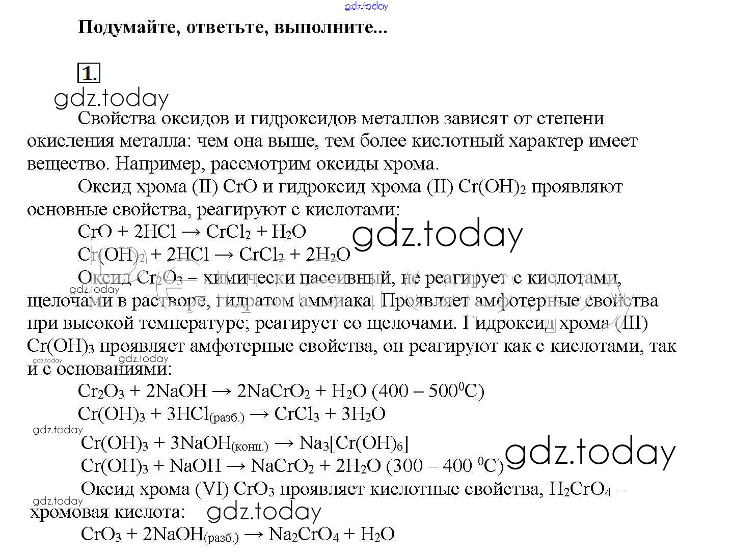 На страницах сайта gdz.today вы найдете учебный и вспомогательный материал, направленный на улучшения знаний школьной программы. ГДЗ - онлайн мир знаний Подумайте, ответьте, выполните Решение к § 34. Оксиды и гидроксиды металлов 1 Учебнику по Химии для 11 класса Рудзитис, Фельдман Базовый уровень Просвещение 2017