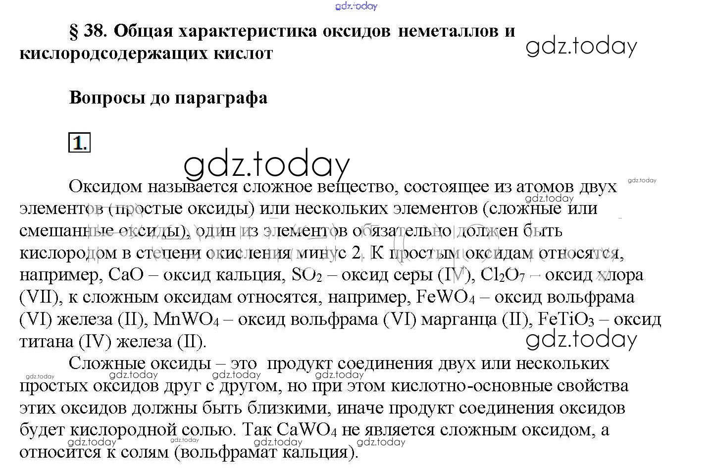 Ответы к Вопросы до параграфа Решение к § 38. Общая характеристика оксидов неметаллов и кислородсодержащих кислот 1 Учебнику по Химии для 11 класса Рудзитис, Фельдман Базовый уровень Просвещение 2017