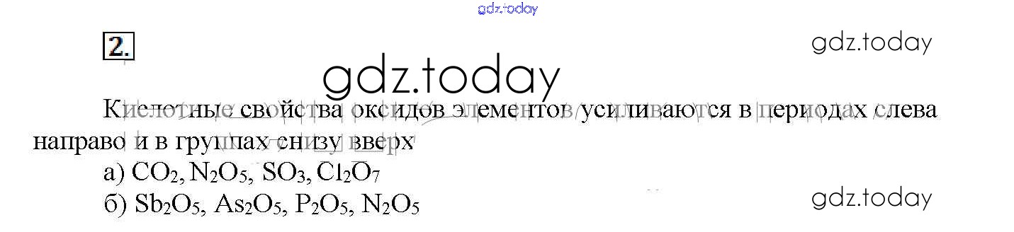 На страницах сайта gdz.today вы найдете учебный и вспомогательный материал, направленный на улучшения знаний школьной программы. ГДЗ - онлайн мир знаний Подумайте, ответьте, выполните Решение к § 38. Общая характеристика оксидов неметаллов и кислородсодержащих кислот 2 Учебнику по Химии для 11 класса Рудзитис, Фельдман Базовый уровень Просвещение 2017