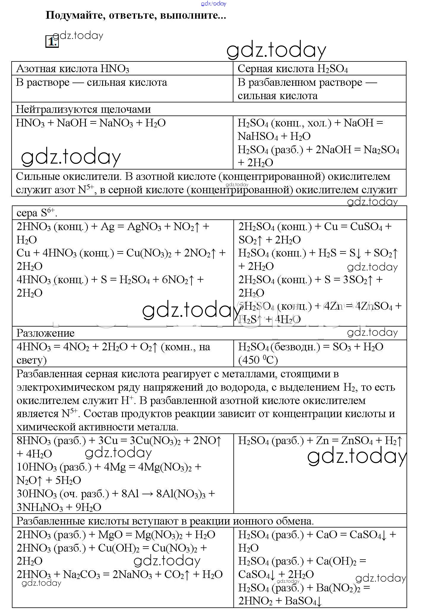 На страницах сайта gdz.today вы найдете учебный и вспомогательный материал, направленный на улучшения знаний школьной программы. ГДЗ - онлайн мир знаний Подумайте, ответьте, выполните Решение к § 39. Окислительные свойства серной и азотной кислот 1 Учебнику по Химии для 11 класса Рудзитис, Фельдман Базовый уровень Просвещение 2017