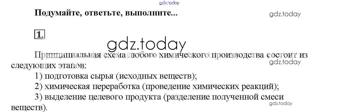 На страницах сайта gdz.today вы найдете учебный и вспомогательный материал, направленный на улучшения знаний школьной программы. ГДЗ - онлайн мир знаний Подумайте, ответьте, выполните Решение к § 43. Химия в промышленности. принципы химического производства 1 Учебнику по Химии для 11 класса Рудзитис, Фельдман Базовый уровень Просвещение 2017
