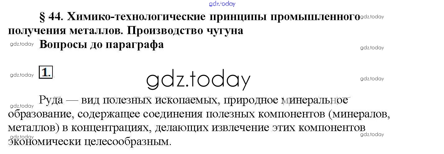 Ответы к Вопросы до параграфа Решение к § 44. Химико-технологические принципы промышленного получения металлов. Производство чугуна 1 Учебнику по Химии для 11 класса Рудзитис, Фельдман Базовый уровень Просвещение 2017