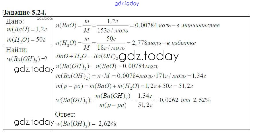 На страницах сайта gdz.today вы найдете учебный и вспомогательный материал, направленный на улучшения знаний школьной программы. ГДЗ - онлайн мир знаний Решение к главе 5 24 Сборнику задач и упражнений по Химии для 8-11 класса Хомченко Новая волна 2011