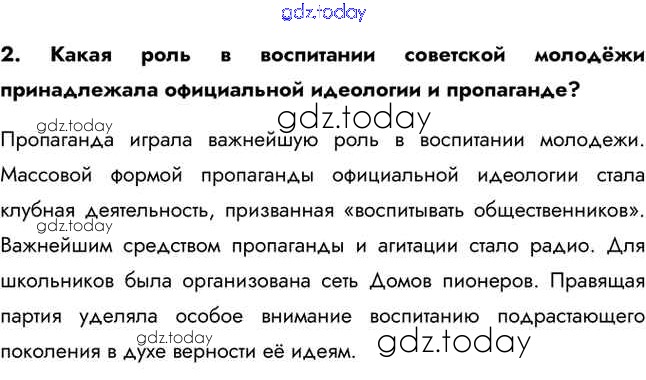 На страницах сайта gdz.today вы найдете учебный и вспомогательный материал, направленный на улучшения знаний школьной программы. ГДЗ - онлайн мир знаний Вопросы и задания Решение к §19 2 Учебнику по Истории для 11 класса Загладин, Петров Базовый уровень Русское слово Инновационная школа 2014