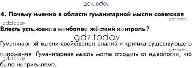 На страницах сайта gdz.today вы найдете учебный и вспомогательный материал, направленный на улучшения знаний школьной программы. ГДЗ - онлайн мир знаний Вопросы и задания Решение к §19 4 Учебнику по Истории для 11 класса Загладин, Петров Базовый уровень Русское слово Инновационная школа 2014