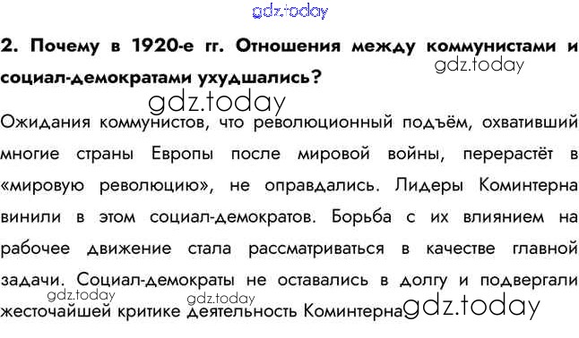 На страницах сайта gdz.today вы найдете учебный и вспомогательный материал, направленный на улучшения знаний школьной программы. ГДЗ - онлайн мир знаний Вопросы и задания Решение к §20 2 Учебнику по Истории для 11 класса Загладин, Петров Базовый уровень Русское слово Инновационная школа 2014