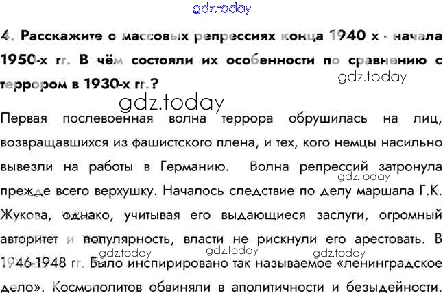 На страницах сайта gdz.today вы найдете учебный и вспомогательный материал, направленный на улучшения знаний школьной программы. ГДЗ - онлайн мир знаний Вопросы и задания Решение к §30 4 Учебнику по Истории для 11 класса Загладин, Петров Базовый уровень Русское слово Инновационная школа 2014