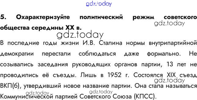 На страницах сайта gdz.today вы найдете учебный и вспомогательный материал, направленный на улучшения знаний школьной программы. ГДЗ - онлайн мир знаний Вопросы и задания Решение к §30 5 Учебнику по Истории для 11 класса Загладин, Петров Базовый уровень Русское слово Инновационная школа 2014