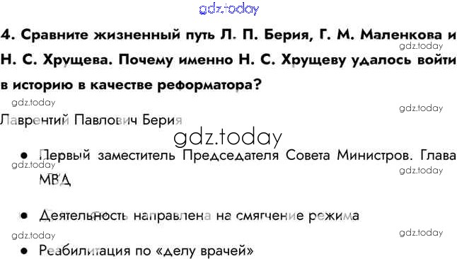 На страницах сайта gdz.today вы найдете учебный и вспомогательный материал, направленный на улучшения знаний школьной программы. ГДЗ - онлайн мир знаний Вопросы и задания Решение к §31 4 Учебнику по Истории для 11 класса Загладин, Петров Базовый уровень Русское слово Инновационная школа 2014
