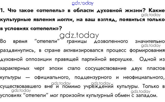 На страницах сайта gdz.today вы найдете учебный и вспомогательный материал, направленный на улучшения знаний школьной программы. ГДЗ - онлайн мир знаний Вопросы и задания Решение к §33 1 Учебнику по Истории для 11 класса Загладин, Петров Базовый уровень Русское слово Инновационная школа 2014