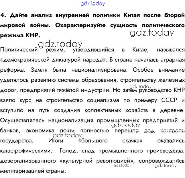На страницах сайта gdz.today вы найдете учебный и вспомогательный материал, направленный на улучшения знаний школьной программы. ГДЗ - онлайн мир знаний Вопросы и задания Решение к §37 4 Учебнику по Истории для 11 класса Загладин, Петров Базовый уровень Русское слово Инновационная школа 2014