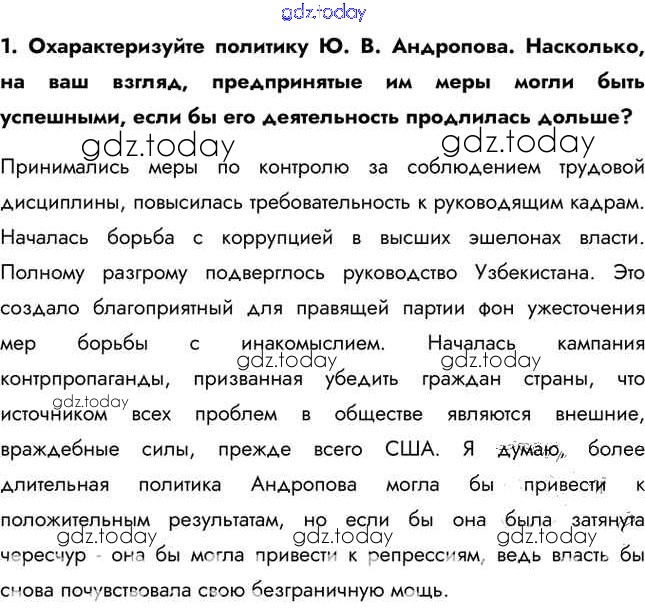 На страницах сайта gdz.today вы найдете учебный и вспомогательный материал, направленный на улучшения знаний школьной программы. ГДЗ - онлайн мир знаний Вопросы и задания Решение к §43 1 Учебнику по Истории для 11 класса Загладин, Петров Базовый уровень Русское слово Инновационная школа 2014