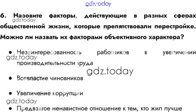 На страницах сайта gdz.today вы найдете учебный и вспомогательный материал, направленный на улучшения знаний школьной программы. ГДЗ - онлайн мир знаний Вопросы и задания Решение к §43 6 Учебнику по Истории для 11 класса Загладин, Петров Базовый уровень Русское слово Инновационная школа 2014