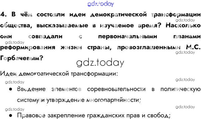 На страницах сайта gdz.today вы найдете учебный и вспомогательный материал, направленный на улучшения знаний школьной программы. ГДЗ - онлайн мир знаний Вопросы и задания Решение к §44 4 Учебнику по Истории для 11 класса Загладин, Петров Базовый уровень Русское слово Инновационная школа 2014