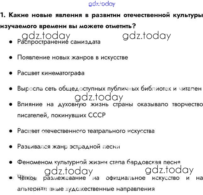 На страницах сайта gdz.today вы найдете учебный и вспомогательный материал, направленный на улучшения знаний школьной программы. ГДЗ - онлайн мир знаний Вопросы и задания Решение к §46 1 Учебнику по Истории для 11 класса Загладин, Петров Базовый уровень Русское слово Инновационная школа 2014