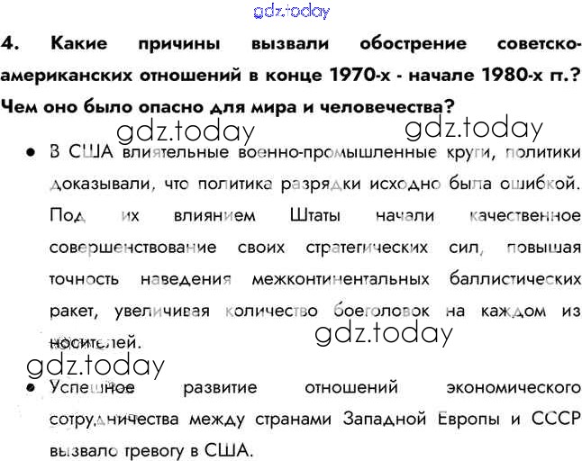 На страницах сайта gdz.today вы найдете учебный и вспомогательный материал, направленный на улучшения знаний школьной программы. ГДЗ - онлайн мир знаний Вопросы и задания Решение к §49 4 Учебнику по Истории для 11 класса Загладин, Петров Базовый уровень Русское слово Инновационная школа 2014