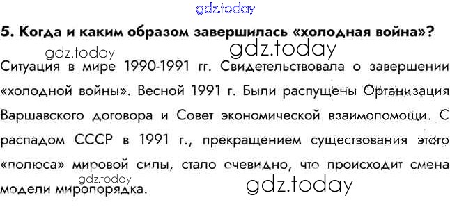 На страницах сайта gdz.today вы найдете учебный и вспомогательный материал, направленный на улучшения знаний школьной программы. ГДЗ - онлайн мир знаний Вопросы и задания Решение к §49 5 Учебнику по Истории для 11 класса Загладин, Петров Базовый уровень Русское слово Инновационная школа 2014