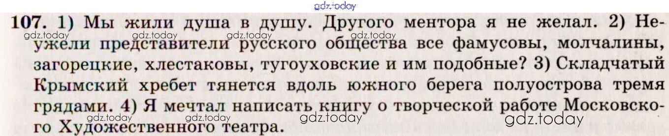 На страницах сайта gdz.today вы найдете учебный и вспомогательный материал, направленный на улучшения знаний школьной программы. ГДЗ - онлайн мир знаний Решение к упражнениям 107 Учебнику по Русскому языку для 10-11 класса Греков, Крючков Просвещение 2016