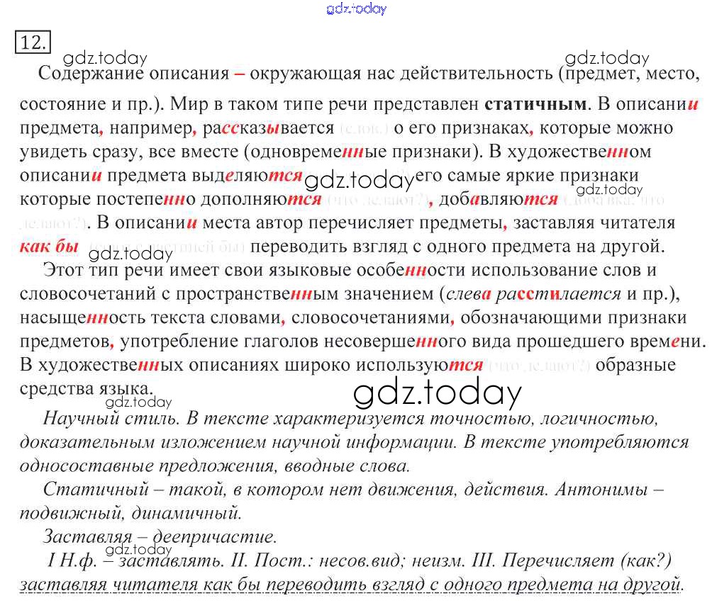 На страницах сайта gdz.today вы найдете учебный и вспомогательный материал, направленный на улучшения знаний школьной программы. ГДЗ - онлайн мир знаний Решение к упражнениям 12 Учебнику по Русскому языку для 10-11 класса Греков, Крючков Просвещение 2016