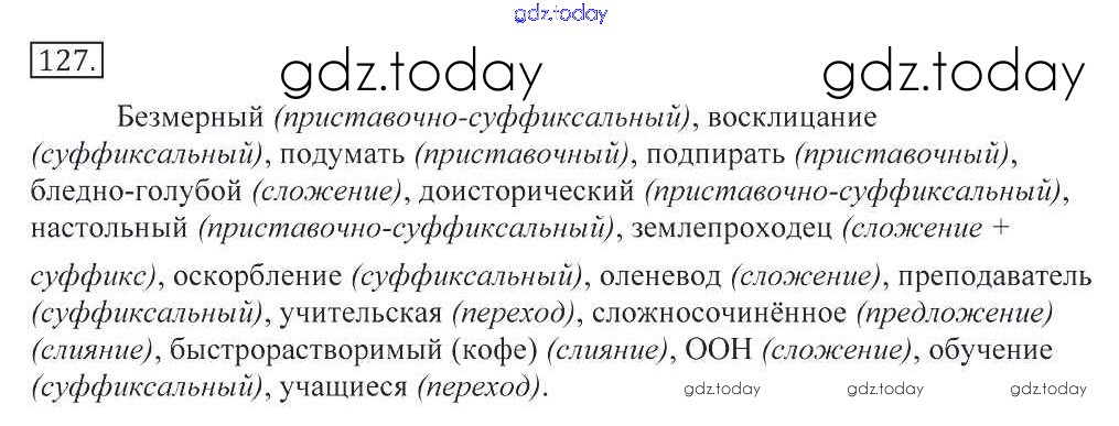 На страницах сайта gdz.today вы найдете учебный и вспомогательный материал, направленный на улучшения знаний школьной программы. ГДЗ - онлайн мир знаний Решение к упражнениям 127 Учебнику по Русскому языку для 10-11 класса Греков, Крючков Просвещение 2016