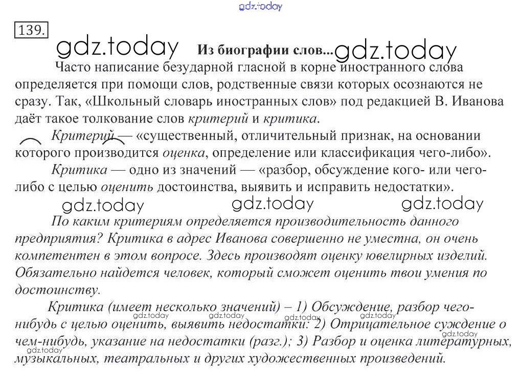 На страницах сайта gdz.today вы найдете учебный и вспомогательный материал, направленный на улучшения знаний школьной программы. ГДЗ - онлайн мир знаний Решение к упражнениям 139 Учебнику по Русскому языку для 10-11 класса Греков, Крючков Просвещение 2016