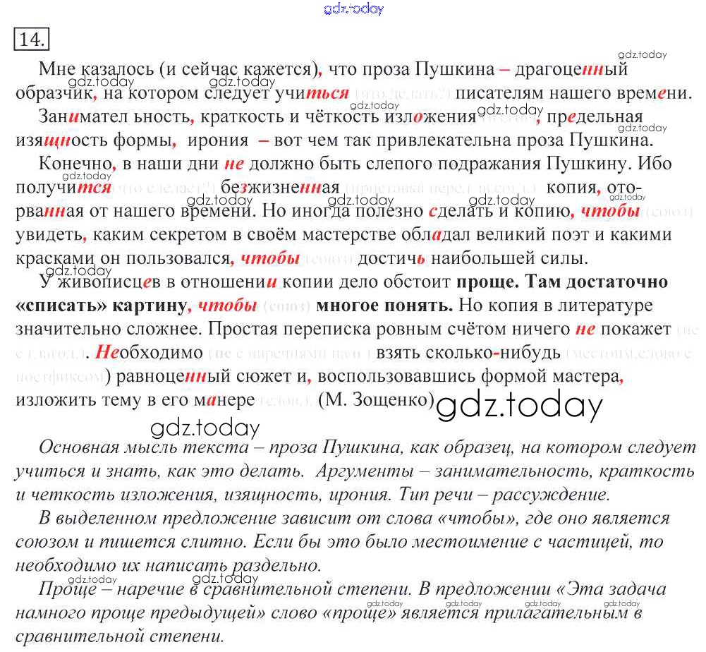 На страницах сайта gdz.today вы найдете учебный и вспомогательный материал, направленный на улучшения знаний школьной программы. ГДЗ - онлайн мир знаний Решение к упражнениям 14 Учебнику по Русскому языку для 10-11 класса Греков, Крючков Просвещение 2016