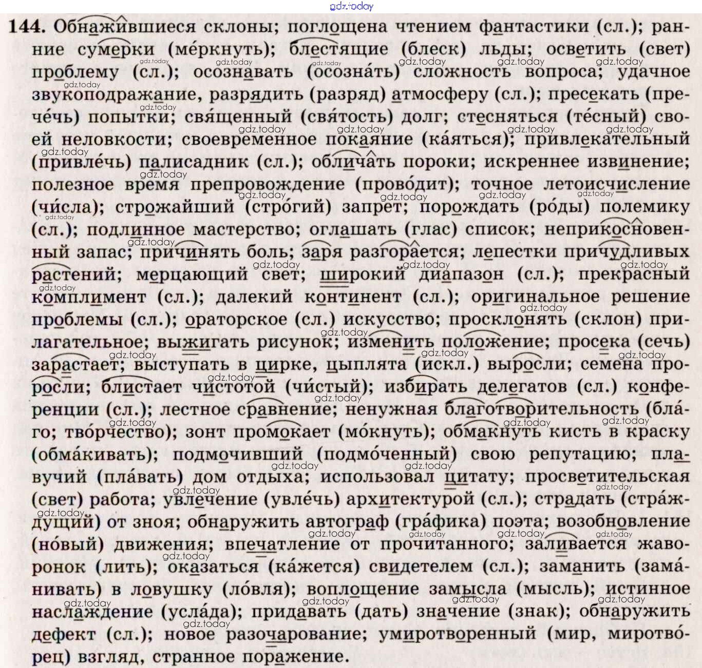 На страницах сайта gdz.today вы найдете учебный и вспомогательный материал, направленный на улучшения знаний школьной программы. ГДЗ - онлайн мир знаний Решение к упражнениям 144 Учебнику по Русскому языку для 10-11 класса Греков, Крючков Просвещение 2016