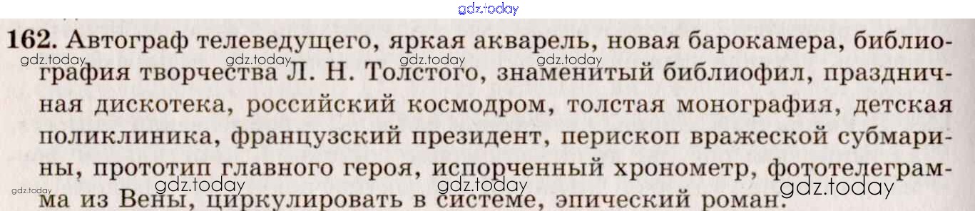 На страницах сайта gdz.today вы найдете учебный и вспомогательный материал, направленный на улучшения знаний школьной программы. ГДЗ - онлайн мир знаний Решение к упражнениям 162 Учебнику по Русскому языку для 10-11 класса Греков, Крючков Просвещение 2016