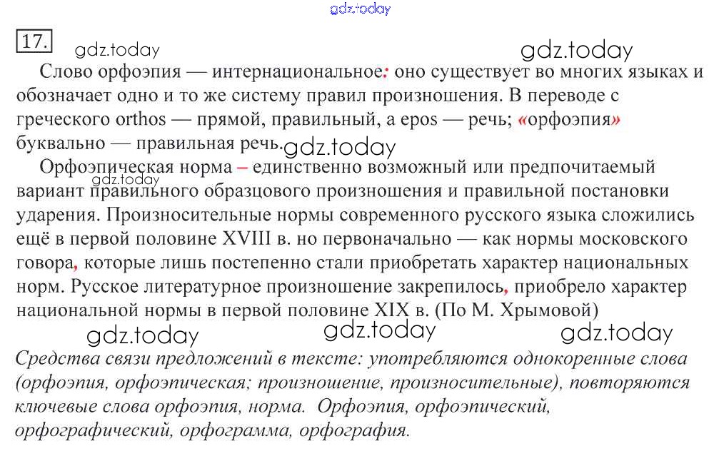 На страницах сайта gdz.today вы найдете учебный и вспомогательный материал, направленный на улучшения знаний школьной программы. ГДЗ - онлайн мир знаний Решение к упражнениям 17 Учебнику по Русскому языку для 10-11 класса Греков, Крючков Просвещение 2016