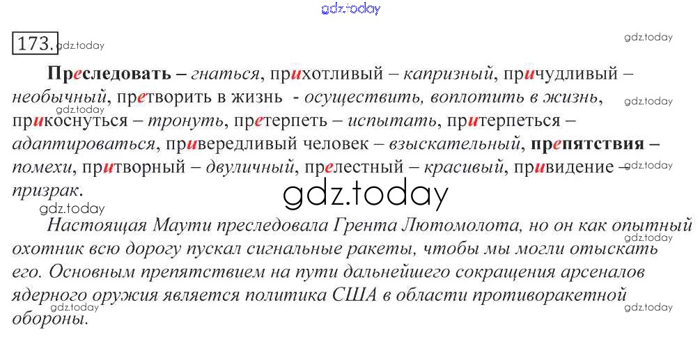 На страницах сайта gdz.today вы найдете учебный и вспомогательный материал, направленный на улучшения знаний школьной программы. ГДЗ - онлайн мир знаний Решение к упражнениям 173 Учебнику по Русскому языку для 10-11 класса Греков, Крючков Просвещение 2016