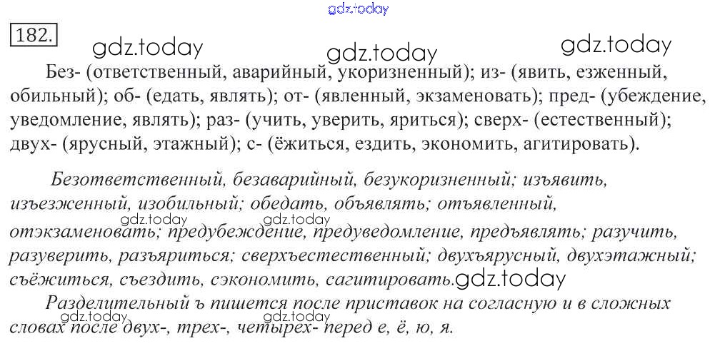 На страницах сайта gdz.today вы найдете учебный и вспомогательный материал, направленный на улучшения знаний школьной программы. ГДЗ - онлайн мир знаний Решение к упражнениям 182 Учебнику по Русскому языку для 10-11 класса Греков, Крючков Просвещение 2016